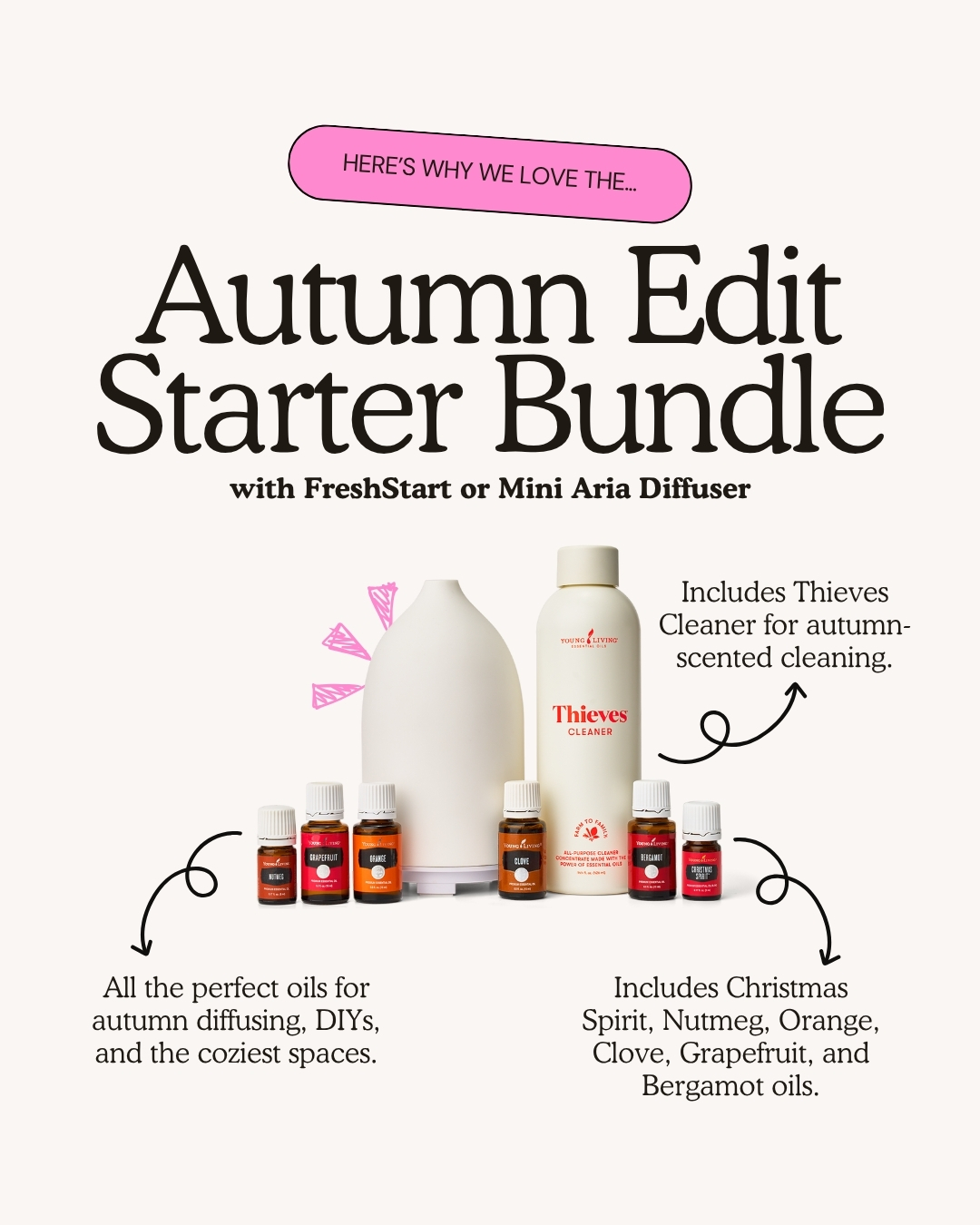 It’s a simple 14-day journey using the oils in Young Living’s Autumn Edit Starter Bundle to create a home that smells like cinnamon, citrus, and calm—while ditching the hidden toxins in conventional products.