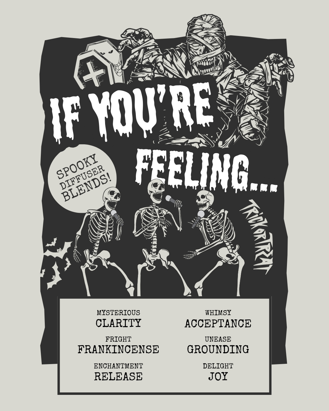 On Halloween night, the air shifts — shadows stretch longer, laughter mingles with shivers, and every creak feels alive with mystery. It’s the perfect time to lean into the enchantment of the season while keeping our spirits balanced and bright. Each emotion we encounter, from the playful to the spine-tingling, can be matched with the comforting support of our oils. These pairings are designed to capture the spooky essence of Halloween while offering a touch of grounding, release, and delight.